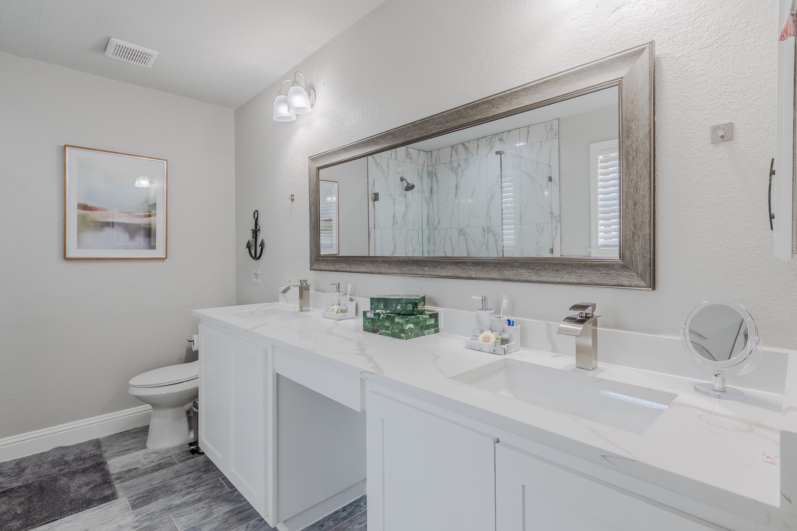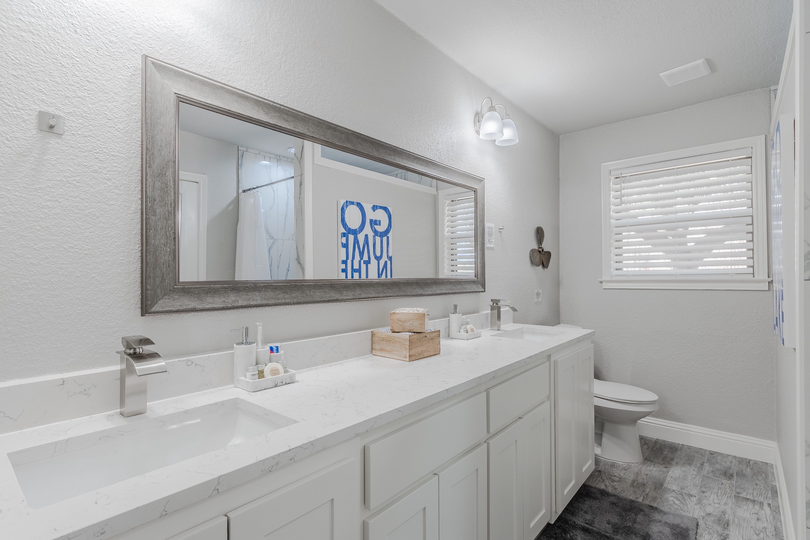 π Bathroom 1: Jack and Jill style with shower, sink, and toilet